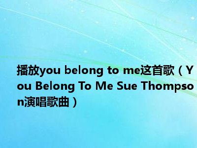 导读 目前是有很多朋友们对于You Belong To Me Sue Thompson演唱歌曲这个信息比较感兴趣,那么小编也是收集了一些You Belong To Me Sue...