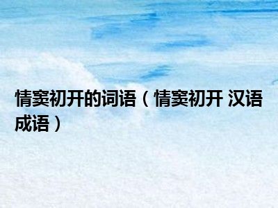 导读 目前是有很多朋友们对于情窦初开 汉语成语这个信息比较感兴趣,那么小编也是收集了一些情窦初开 汉语成语相关的信息来分享给大家,希望你...