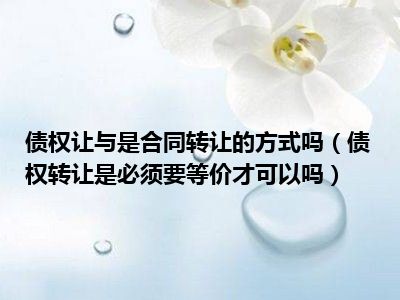 目前大家应该是对债权转让是必须要等价才可以吗比较感兴趣的,所以今天CC就来为大家整理了一些关于债权转让是必须要等价才可以吗方面的相关知识来分享给大家,希望大家会喜欢哦。