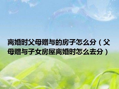 目前大家应该是对父母赠与子女房屋离婚时怎么去分比较感兴趣的,所以今天CC就来为大家整理了一些关于父母赠与子女房屋离婚时怎么去分方面的相关知识来分享给大家,希望大家会喜欢哦。
