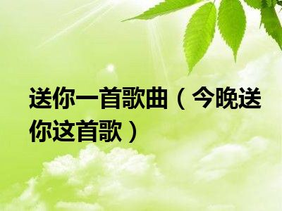 导读目前是有很多朋友们对于今晚送你这首歌这个信息比较感兴趣,那么小编也是收集了一些今晚送你这首歌相关的信息来分享给大家,希望你会喜欢哦...