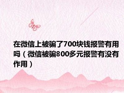 目前大家应该是对微信被骗800多元报警有没有作用比较感兴趣的,所以今天CC就来为大家整理了一些关于微信被骗800多元报警有没有作用方面的相关知识来分享给大家,希望大家会喜欢哦。
