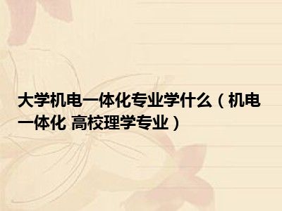 导读 目前是有很多朋友们对于机电一体化 高校理学专业这个信息比较感兴趣,那么小编也是收集了一些机电一体化 高校理学专业相关的信息来分享给...