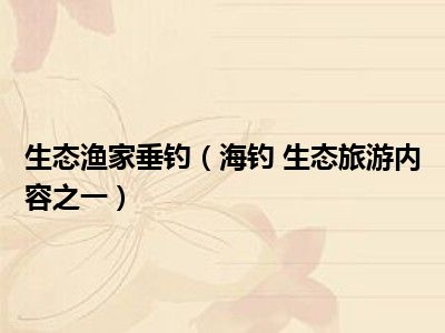 导读 目前是有很多朋友们对于海钓 生态旅游内容之一这个信息比较感兴趣,那么小编也是收集了一些海钓 生态旅游内容之一相关的信息来分享给大家...