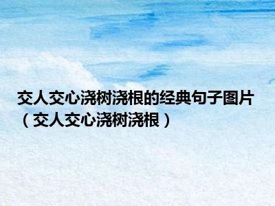 1、“交人交心,浇树浇根”,俗语,意思指和人交往,贵在交心,这道理就像浇树要把水浇到根上才能枝繁叶茂一样。