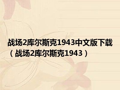 导读目前是有很多朋友们对于战场2:库尔斯克1943这个信息比较感兴趣,那么小编也是收集了一些战场2:库尔斯克1943相关的信息来分享给大家,希望...
