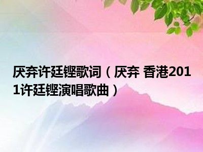 导读 目前是有很多朋友们对于厌弃 香港2011许廷铿演唱歌曲这个信息比较感兴趣,那么小编也是收集了一些厌弃 香港2011许廷铿演唱歌曲相关的信息...