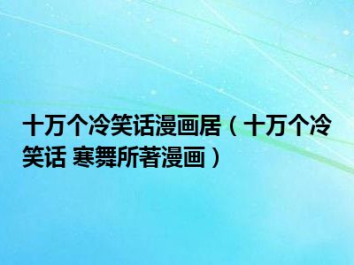 导读 目前是有很多朋友们对于十万个冷笑话 寒舞所著漫画这个信息比较感兴趣,那么小编也是收集了一些十万个冷笑话 寒舞所著漫画相关的信息来分...
