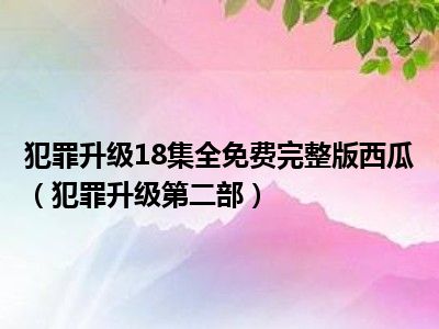 导读目前是有很多朋友们对于犯罪升级第二部这个信息比较感兴趣,那么小编也是收集了一些犯罪升级第二部相关的信息来分享给大家,希望你会喜欢哦...