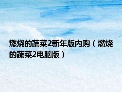 导读目前是有很多朋友们对于燃烧的蔬菜2电脑版这个信息比较感兴趣,那么小编也是收集了一些燃烧的蔬菜2电脑版相关的信息来分享给大家,希望你会...