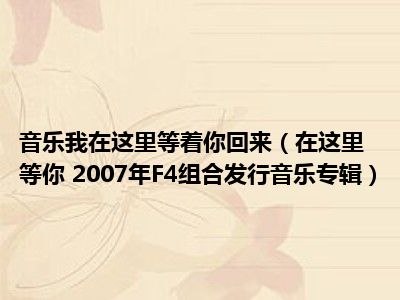 导读 目前是有很多朋友们对于在这里等你 2007年F4组合发行音乐专辑这个信息比较感兴趣,那么小编也是收集了一些在这里等你 2007年F4组合发行音...