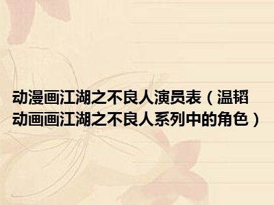 导读 目前是有很多朋友们对于温韬 动画画江湖之不良人系列中的角色这个信息比较感兴趣,那么小编也是收集了一些温韬 动画画江湖之不良人系列中...