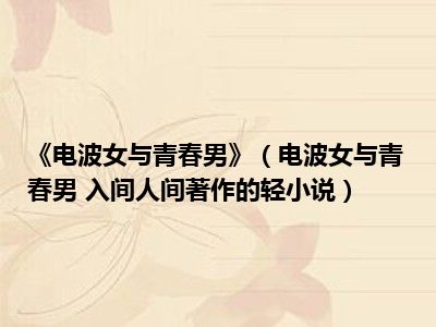 导读 目前是有很多朋友们对于电波女与青春男 入间人间著作的轻小说这个信息比较感兴趣,那么小编也是收集了一些电波女与青春男 入间人间著作的...