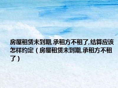 目前大家应该是对房屋租赁未到期,承租方不租了比较感兴趣的,所以今天CC就来为大家整理了一些关于房屋租赁未到期,承租方不租了方面的相关知识来分享给大家,希望大家会喜欢哦。