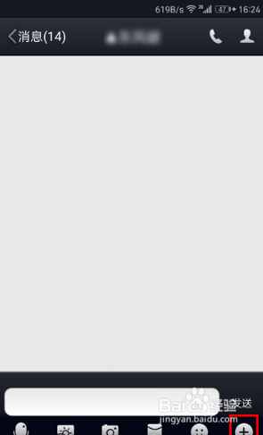 首先,打开与好友的聊天界面,再点击聊天窗口右下角的”+“号。