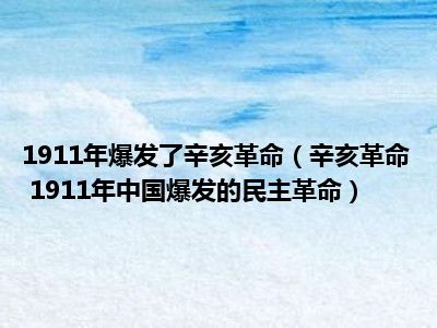 当前大家对于辛亥革命 1911年中国爆发的民主革命都是颇为感兴趣的,大家都想要了解一下辛亥革命 1911年中国爆发的民主革命,那么小美也是在网络上收集了一些关于辛亥革命 1911年中国爆发的民主革命的一些信息来分享给大家,希望能够帮到大家哦。