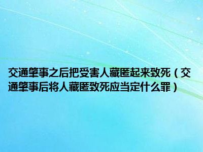 目前大家应该是对交通肇事后将人藏匿致死,应当定什么罪比较感兴趣的,所以今天CC就来为大家整理了一些关于交通肇事后将人藏匿致死,应当定什么罪方面的相关知识来分享给大家,希望大家会喜欢哦。