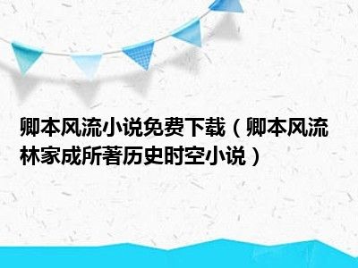 导读 当前大家对于卿本风流 林家成所著历史时空小说都是颇为感兴趣的,大家都想要了解一下卿本风流 林家成所著历史时空小说,那么小美也是在...