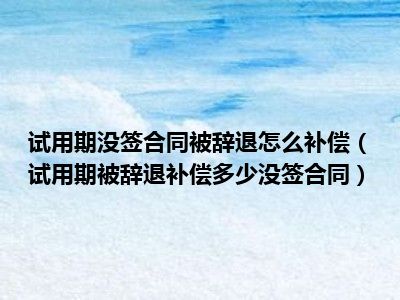 目前大家应该是对试用期被辞退补偿多少没签合同比较感兴趣的,所以今天CC就来为大家整理了一些关于试用期被辞退补偿多少没签合同方面的相关知识来分享给大家,希望大家会喜欢哦。