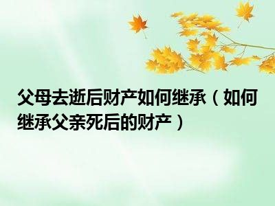 目前大家应该是对如何继承父亲死后的财产比较感兴趣的,所以今天CC就来为大家整理了一些关于如何继承父亲死后的财产方面的相关知识来分享给大家,希望大家会喜欢哦。
