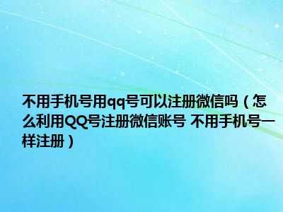 导读 今天小风给大家收集了一些不用手机号用qq号可以注册微信吗,怎么利用QQ号注册微信账号 不用手机号一样注册方面的信息来分享给大家,如果大...