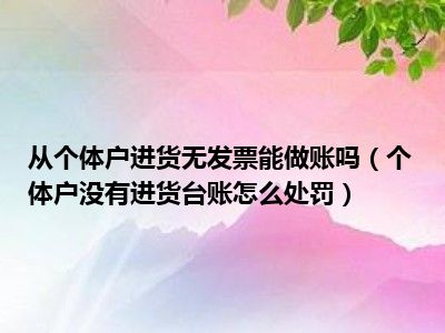 目前大家应该是对个体户没有进货台账怎么处罚比较感兴趣的,所以今天CC就来为大家整理了一些关于个体户没有进货台账怎么处罚方面的相关知识来分享给大家,希望大家会喜欢哦。