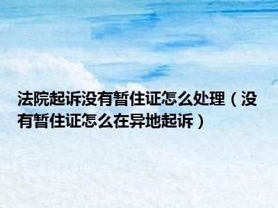 目前大家应该是对没有暂住证怎么在异地起诉比较感兴趣的,所以今天CC就来为大家整理了一些关于没有暂住证怎么在异地起诉方面的相关知识来分享给大家,希望大家会喜欢哦。