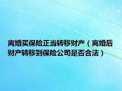 目前大家应该是对离婚后财产转移到保险公司是否合法比较感兴趣的,所以今天CC就来为大家整理了一些关于离婚后财产转移到保险公司是否合法方面的相关知识来分享给大家,希望大家会喜欢哦。
