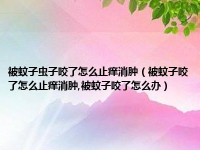 目前大家应该是对被蚊子咬了怎么止痒消肿,被蚊子咬了怎么办比较感兴趣的,所以今天小编CC就来为大家整理了一些关于被蚊子咬了怎么止痒消肿,被蚊子咬了怎么办方面的相关知识来分享给大家,希望大家会喜欢哦。