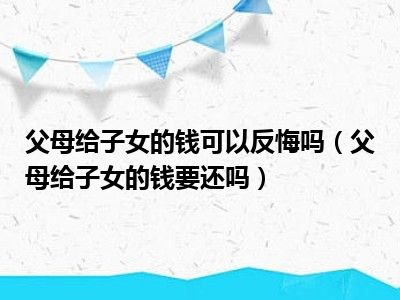目前大家应该是对父母给子女的钱要还吗比较感兴趣的,所以今天CC就来为大家整理了一些关于父母给子女的钱要还吗方面的相关知识来分享给大家,希望大家会喜欢哦。