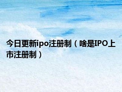 Ipo注册制(什么是IPO上市注册制?)