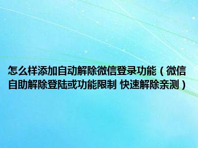 7、漫长的等待解封你对解封这件事不是太关注的话,而且微信也没有那么上瘾的话,那不必麻烦了。你可以耐心地等几天,这样,微信就会自动解封了。当然,如果还是没有解封的话,最好还是按以上的几种方法进行解封的好。