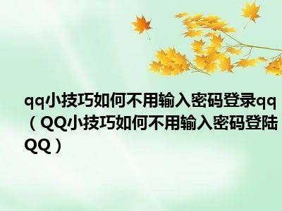 导读相信目前很多小伙伴对于QQ小技巧如何不用输入密码登陆QQ都比较感兴趣,那么小搜今天在网上也是收集了一些与QQ小技巧如何不用输入密码登陆QQ...