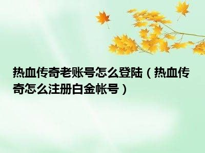 导读想必现在有很多小伙伴对于热血传奇怎么注册白金帐号方面的知识都比较想要了解,那么今天小好小编就为大家收集了一些关于热血传奇怎么注册...