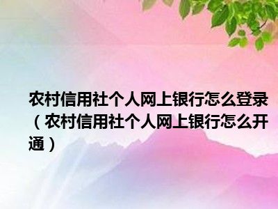 导读相信目前很多小伙伴对于农村信用社个人网上银行怎么开通都比较感兴趣,那么小搜今天在网上也是收集了一些与农村信用社个人网上银行怎么开通...