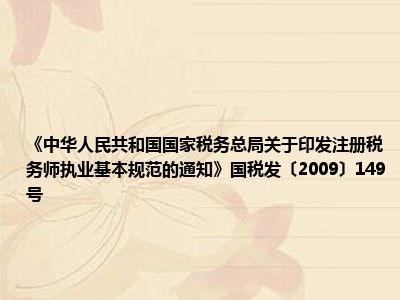 导读 当前大家对于国家税务总局关于印发注册税务师执业基本准则的通知 国税发[2009]149号都是颇为感兴趣的,大家都想要了解一下国家税务总局关...