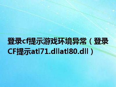 今天小风给大家收集了一些登录cf提示游戏环境异常,登录CF提示atl71.dll/atl80.dll方面的信息来分享给大家,如果大家感兴趣的话就接着看下面得文章吧