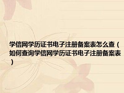 导读今天小风给大家收集了一些学信网学历证书电子注册备案表怎么查,如何查询学信网学历证书电子注册备案表方面的信息来分享给大家,如果大家感...