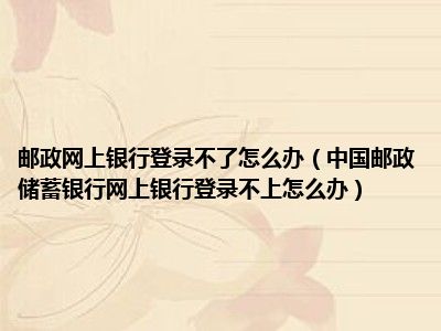 导读今天小风给大家收集了一些邮政网上银行登录不了怎么办,中国邮政储蓄银行网上银行登录不上怎么办方面的信息来分享给大家,如果大家感兴趣的...