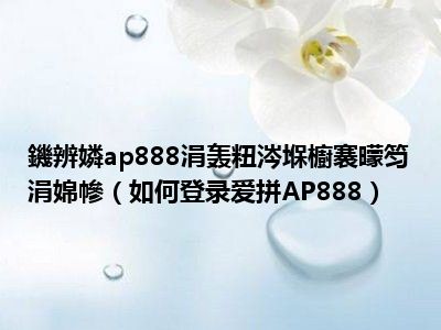 导读想必现在有很多小伙伴对于如何登录爱拼AP888方面的知识都比较想要了解,那么今天小好小编就为大家收集了一些关于如何登录爱拼AP888方面的...