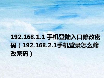 导读相信目前很多小伙伴对于192.168.2.1手机登录怎么修改密码?都比较感兴趣,那么小搜今天在网上也是收集了一些与192.168.2.1手机登录怎么修改...