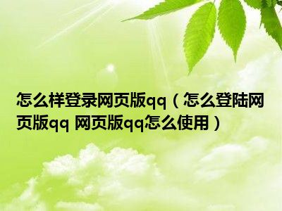 导读 相信目前很多小伙伴对于怎么登陆网页版qq 网页版qq怎么使用都比较感兴趣,那么小搜今天在网上也是收集了一些与怎么登陆网页版qq 网页版qq...
