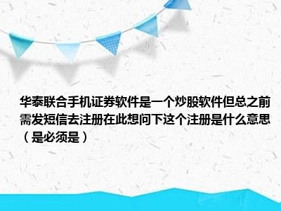 导读 想必现在有很多小伙伴对于华泰联合手机证券软件是一个炒股软件,但总之前需发短信去注册,在此想问下这个注册是什么意思 是必须是方面的...