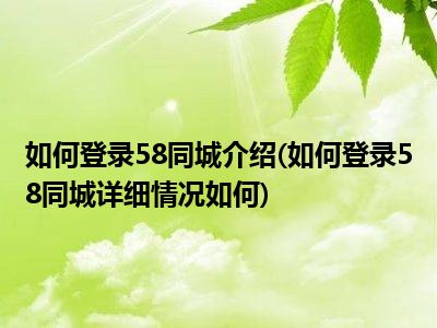 导读想必现在有很多小伙伴对于如何登录58同城方面的知识都比较想要了解,那么今天小好小编就为大家收集了一些关于如何登录58同城方面的知识分...