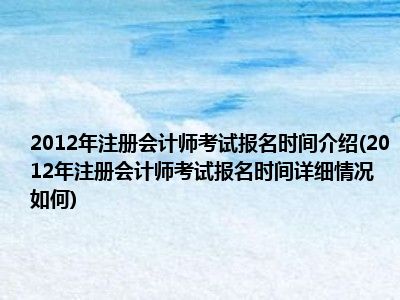 导读想必现在有很多小伙伴对于2012年注册会计师考试报名时间方面的知识都比较想要了解,那么今天小好小编就为大家收集了一些关于2012年注册会...
