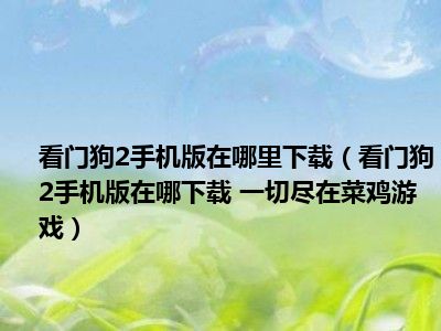 今天小编来给大家分享一些关于看门狗2手机版在哪下载 一切尽在菜鸡游戏方面的知识吧,希望大家会喜欢哦