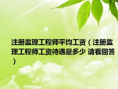 今天小编来给大家分享一些关于注册监理工程师工资待遇是多少 请看回答方面的知识吧,希望大家会喜欢哦